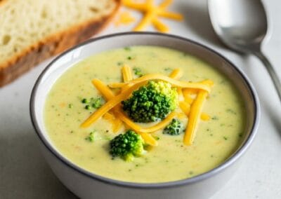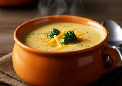 Each spoonful is a symphony of textures and tastes—tender broccoli, creamy broth, and that sharp cheddar bite. It’s a simple yet satisfying dish that’s perfect for a quick weeknight meal or a cozy weekend lunch.