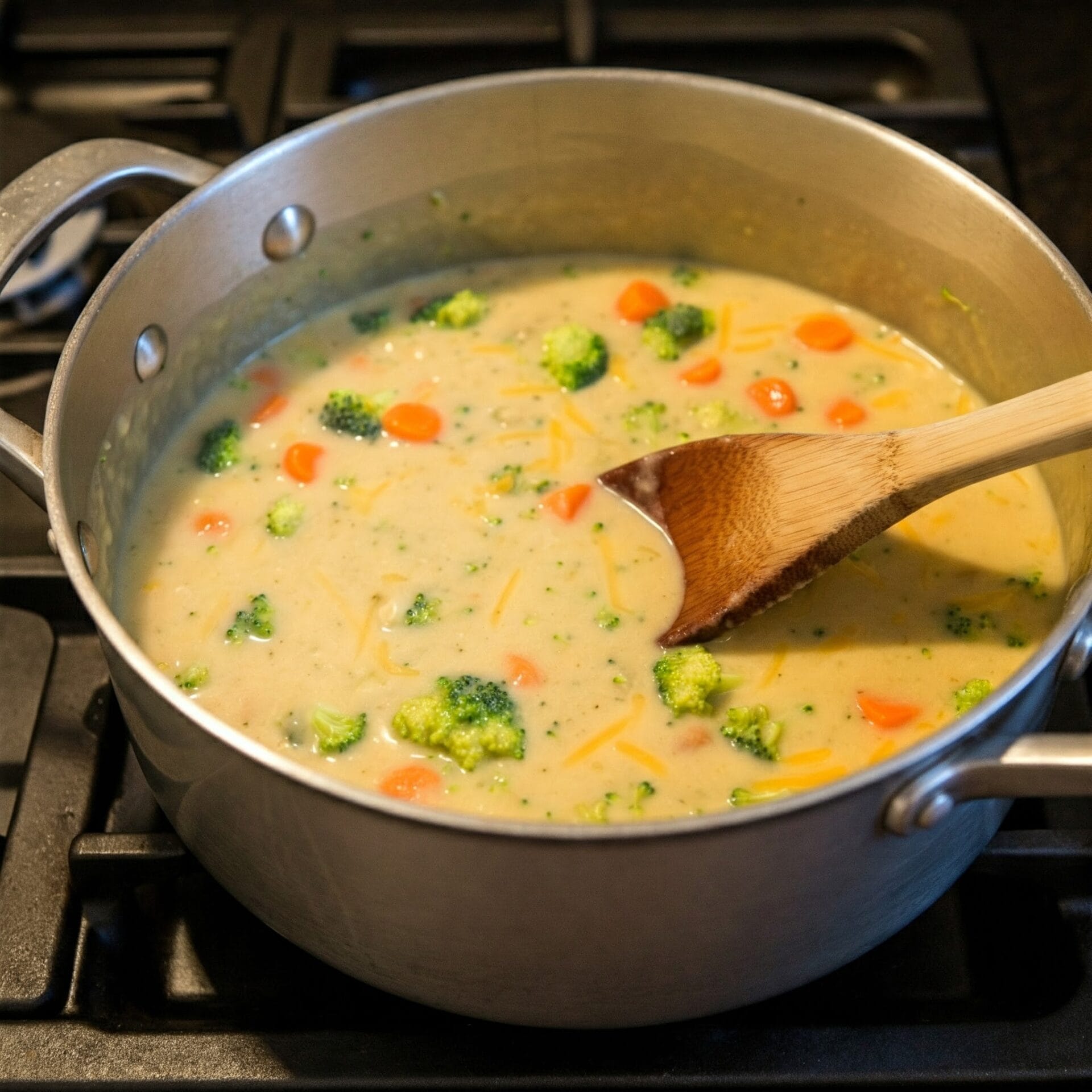 Stovetop: The best way to reheat Broccoli Cheddar Soup is gently on the stovetop over low heat. Stir occasionally to prevent sticking and scorching. If the soup seems thick, you can thin it out with a splash of milk or broth.