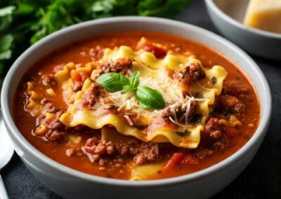 Lasagna soup freezes well — but it’s best to freeze without the pasta to avoid it becoming mushy. Freeze the broth and meat mixture in airtight containers or freezer bags for up to 3 months. Add freshly cooked pasta when reheating.