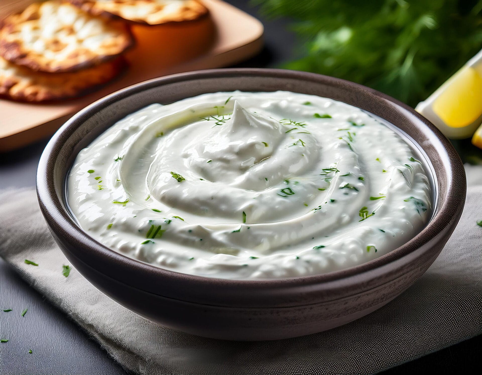 - Place the prepared cucumber in a medium-sized bowl. Add the Greek yogurt, lemon juice, olive oil, minced garlic, salt, and pepper to the bowl. Stir all the ingredients together until they are well combined and the tzatziki sauce is smooth and creamy. Cover the bowl and set it aside in the refrigerator for at least 20 minutes. This will allow the flavors to meld and the sauce to thicken slightly.1¼ Cups Greek Yogurt, 1 Tbsp. Lemon Juice, 1 Tbsp. Extra Virgin Olive Oil, 1 Clove Garlic, ¼ Ttsp. salt, 1 Pinch Black Pepper