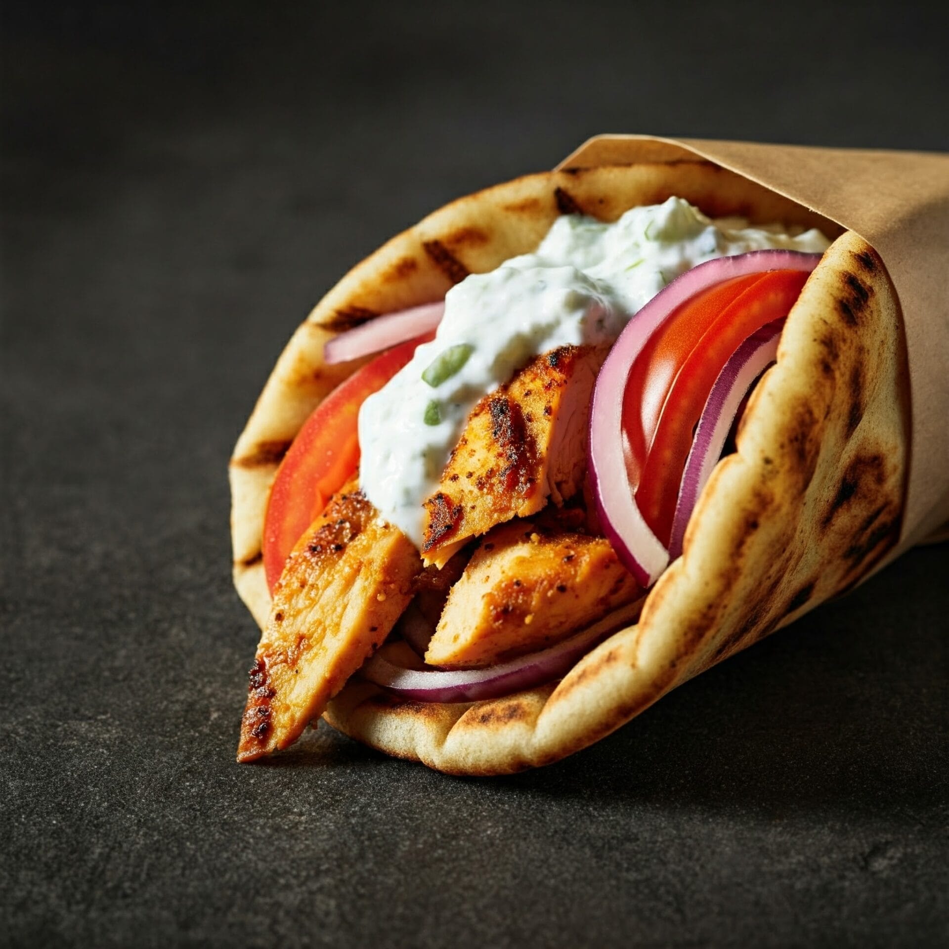 - Layer the Ingredients: Spread some tzatziki sauce on the pita bread, then add the salad, chicken, and any additional toppings you like.
