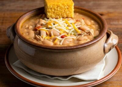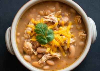 Creamy, comforting, and packed with bold flavor, this White Chicken Chili is a delicious twist on the classic. Tender chunks of chicken simmer with white beans, sweet corn, and a medley of warming spices in a rich, creamy broth. It’s hearty, satisfying, and perfect for cozy nights or casual get-togethers.