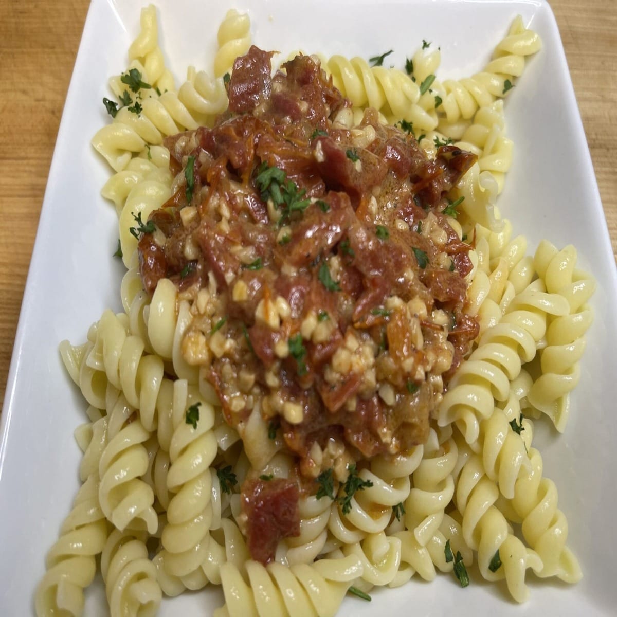- The sauce is best done as a pour-over sauce and garnished with a little chopped parsley.
